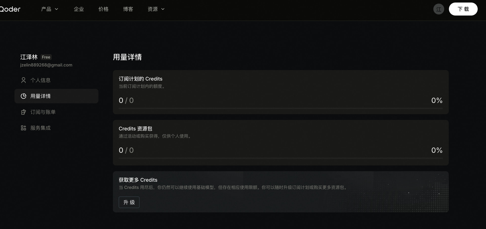 我在个人电脑上用另一个邮箱注册和登录了一下,结果也没有赠送的credits。我这电脑和邮箱不可能和qoder有过任何联系,看来不充钱是没法知道qoder的credit消耗速度了。