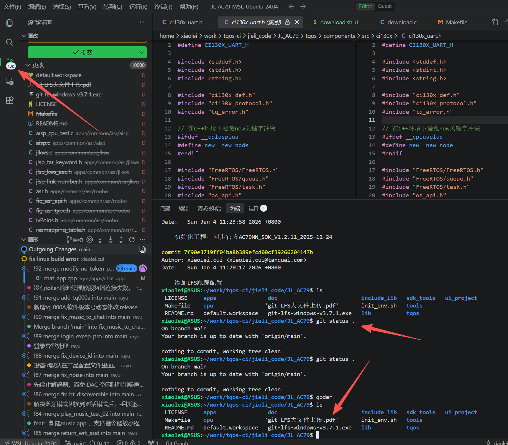 git status可以看到是没有修改的, 但是qoder的工具显示有10k+的修改。 我使用的ssh连接wsl里面的工程,ubuntu24.04