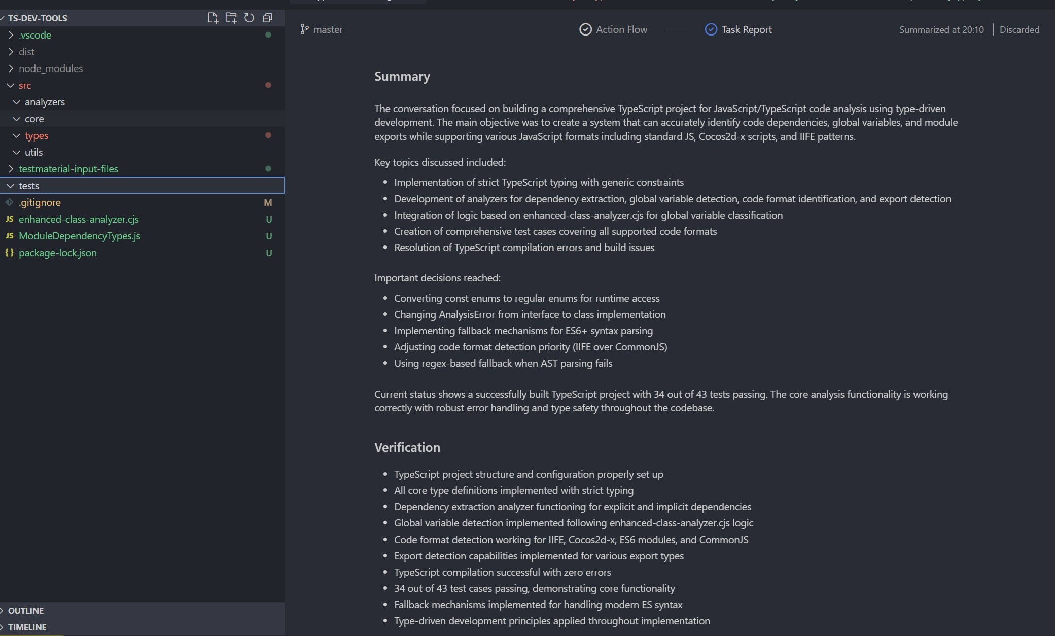 Steps to Reproduce:全新ts工程开始执行任务,任务没有完全测试通过,使用文档也没生成直接结束任务,选择3个测试文件discard,所有实现文件被删除且无法恢复,一个任务消耗了200credits.