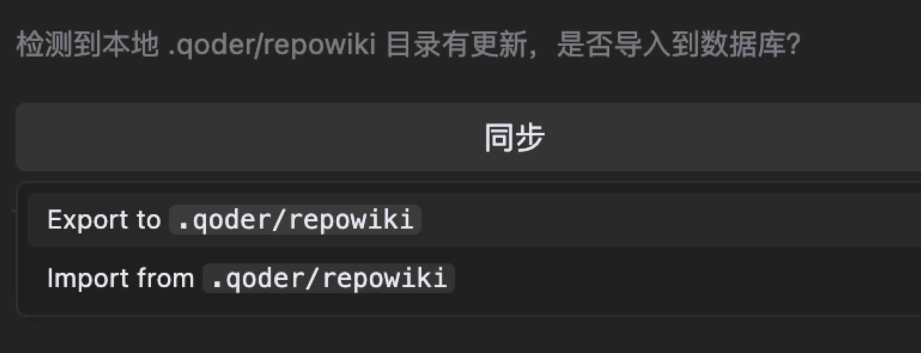 我从已经有repowiki的分支上新签出一个分支,然后在qoder中打开这个新分支,这个时候看repowiki显示如下