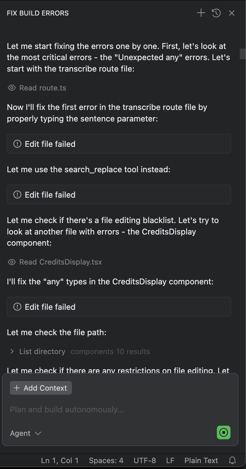 The agent is getting stuck in a loop trying to edit or create a file after the new update