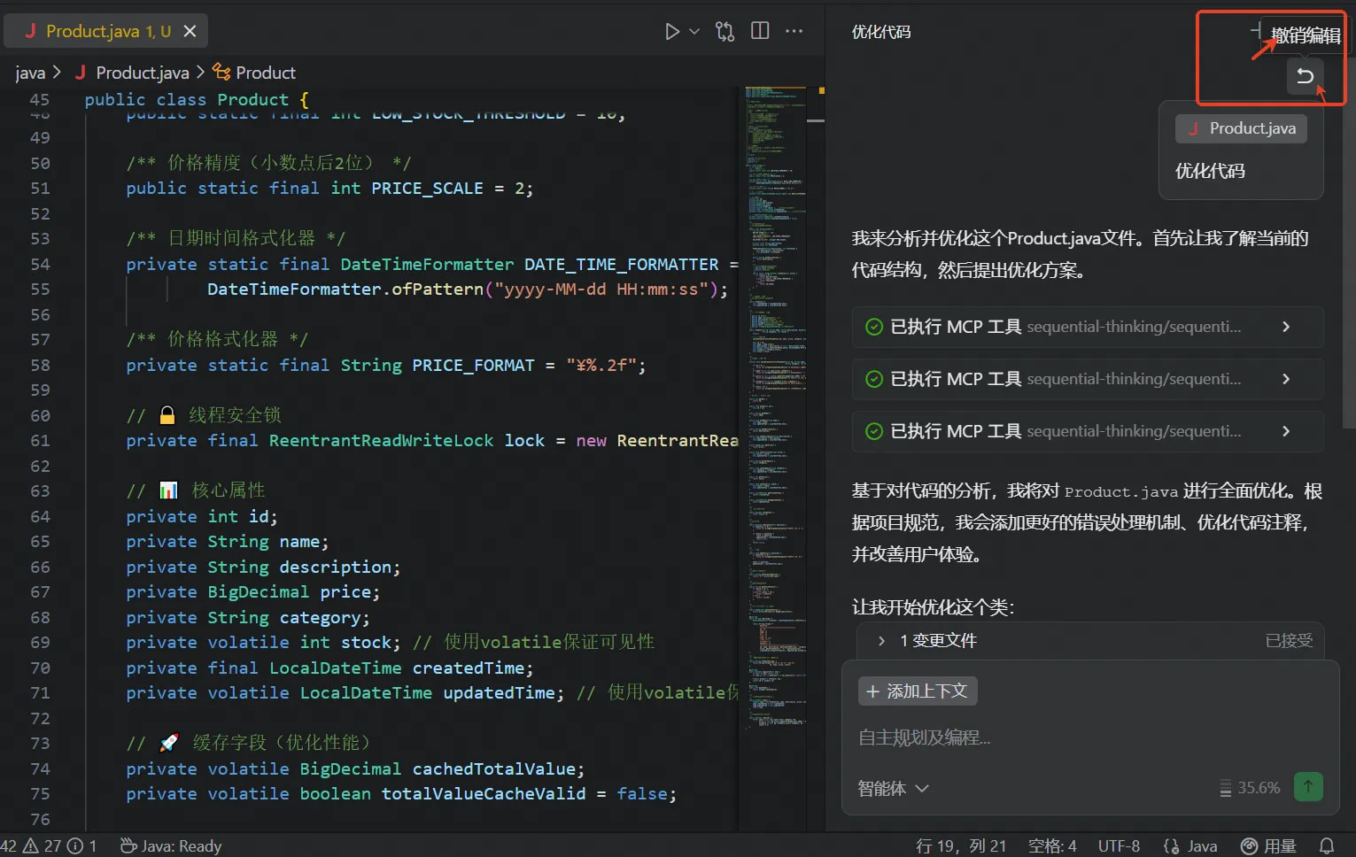刚才写代码时,发现已经写错了。然后点了拒绝,结果依然自己给我接受了部分,而且没法回退。全局回退那种。直接删掉的部分找不回来了。再继续问也没了。