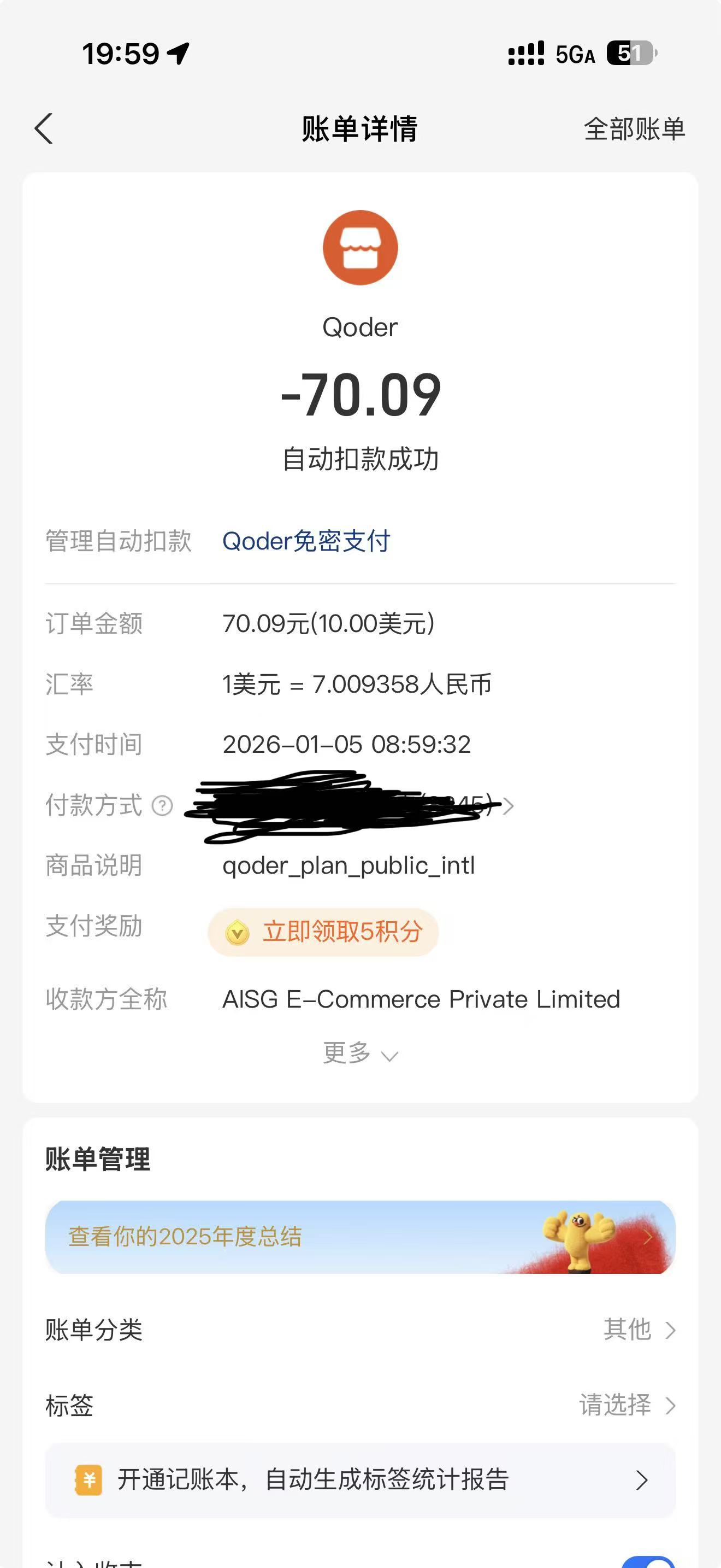 我的Qoder账号,邮箱是798415372@qq.com。我的支付宝账号于2026年1月05日被扣款70.09元,商家订单号是2026010522001427361430217940,误操作导致,实际不需要相关服务。请核实退款,谢谢。