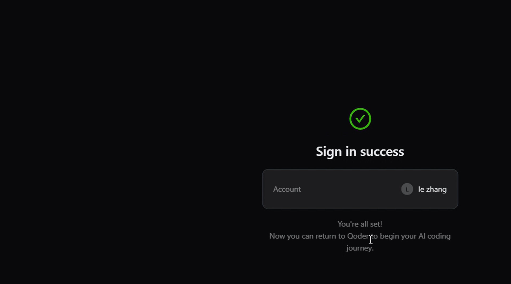 When I try to log in, the message “Qoder: Sign out success!” appears, but the account is not accessed successfully.